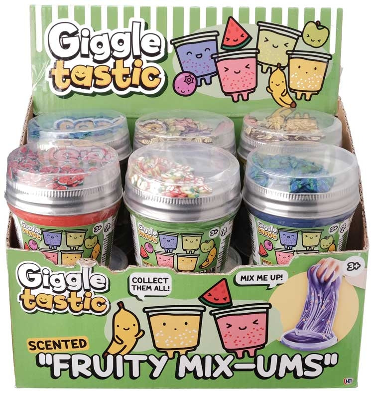 Slíminu fylgir ávaxtamunstur sem hægt er að blanda saman við slímið sem gerir leikinn enn skemmtilegri.